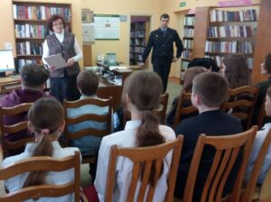Аб адказнасці непаўналетніх за свае ўчынкі вёў размову участковы інспектар Дзмітрый Уладзіслававіч Гірстун. Ён звярнуў увагу вучняў на паводзіны ў школе на перапынках, аб паводзінах на дарогах, аб крадзяжах, аб распіцці алкагольных напояў. Звярнуў увагу на тое што ідзе зіма, катацца па лёдзе можна толькі пад наглядам бацькоў. Адказаў на пытанні вучняў, якіх было нямала. На мерапрыемстве прысутнічаў таксама ўчастковы інспектар, які адказвае за парадак у аг. Нарач Андрэй Ігаравіч Марозаў.