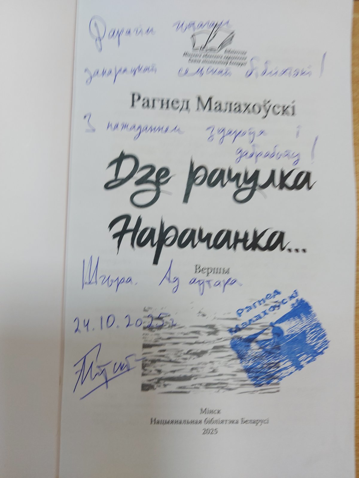 У ДУ “Занарацкая сярэдняя школа” адбылася сустрэча з паэтам, перакладчыкам, фота мастаком Рагнедам Малахоўскім. Рагнед пяць гадоў быў вучнем Занарацкай школы, таму з першых хвілін склаліся цёплыя, шчырыя ўзаемаадносіны.