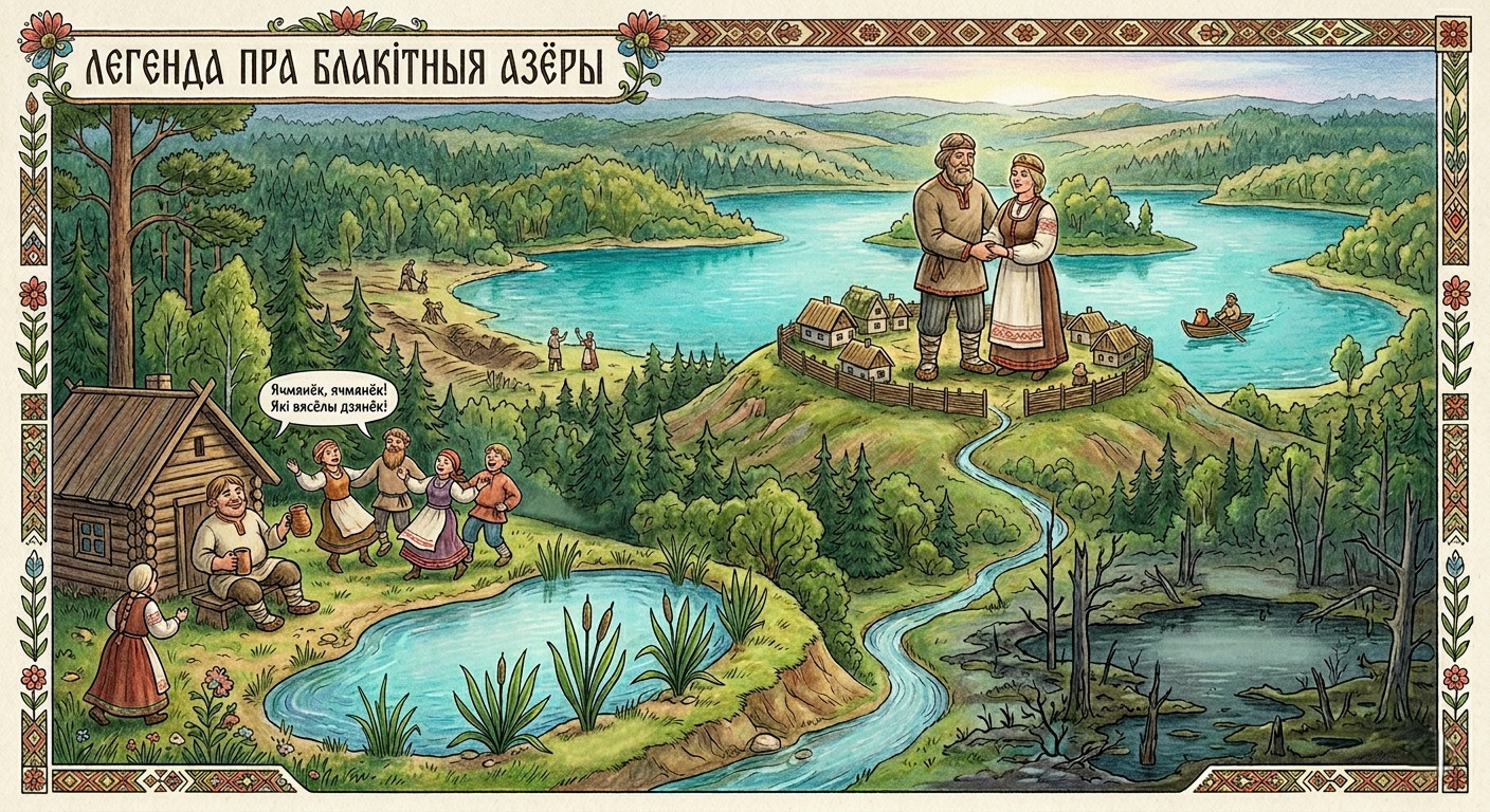 У гушчары старых бароў, як сляза, упаўшая з неба, блішчэла вялікае возера. Вельмі прыгожым яно было. Расказы пра яго чароўнасць ішлі ад паселішча да паселішча і нават ў далёкіх краінах пра яго ведалі.