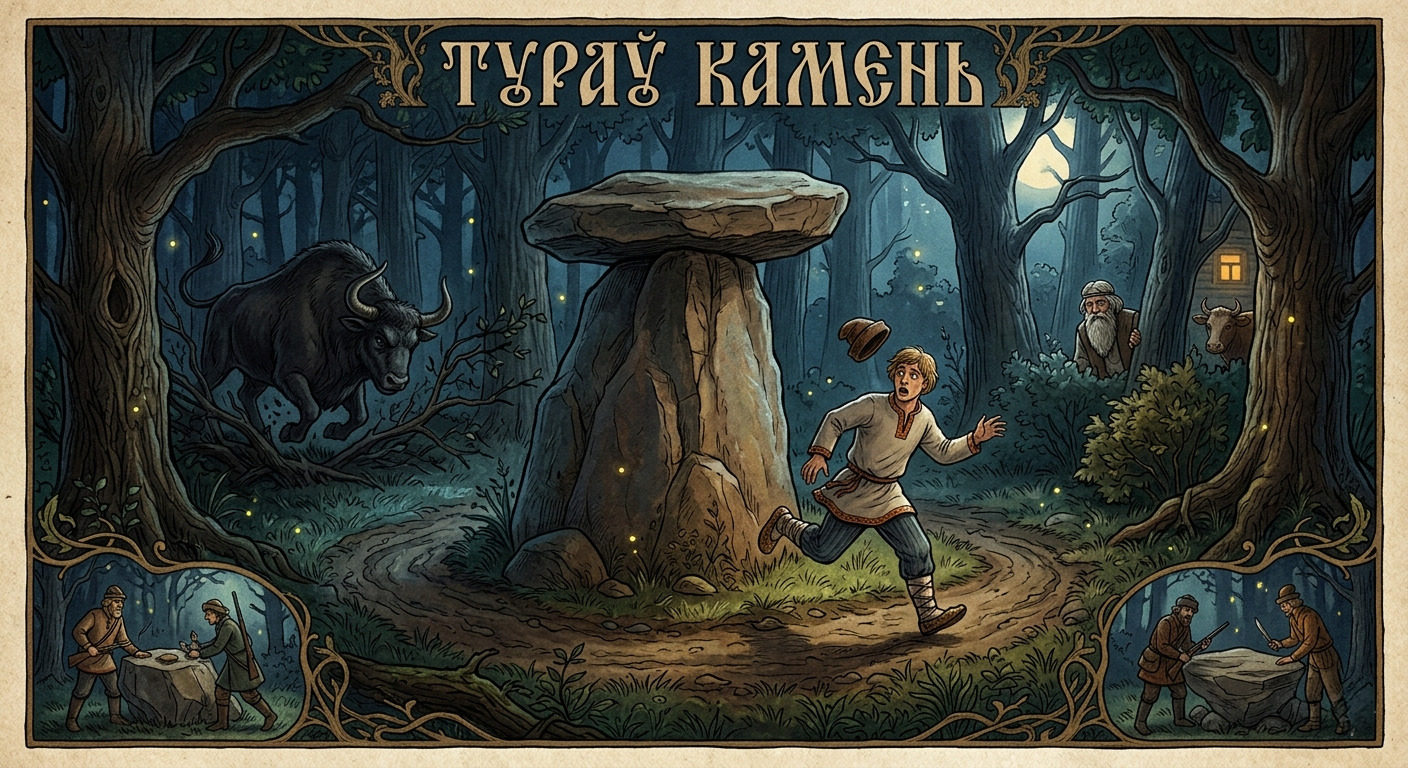 — За мной гнаўся… тур… Страшэнны і вялікі. Мяне выратаваў камень, у які звер стукнуўся і паваліўся.