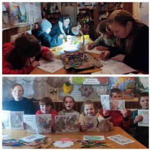 В Лукьяновичской библиотеке-клубе прошел мастер -класс “Новогодняя открытка”. Открытка включала в себя первую страницу раскраску с зимним рисунком, а внутри написанное поздравление с пожеланиями.Каждый ребенок выбирал подходящий сюжет,подбирал слова,вспоминал добрые пожелания. В конце у каждого получилась своя открытка и выглядела по разному – оригинально и необычно.