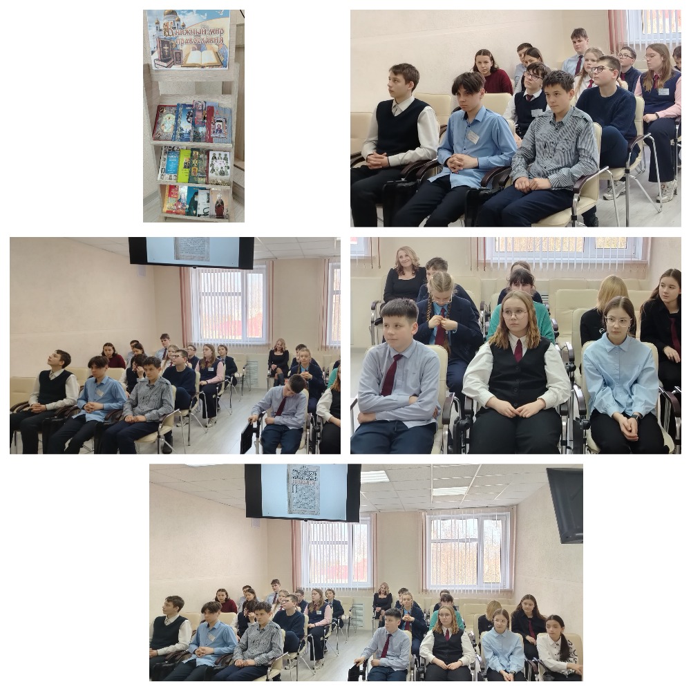Ребята с интересом слушали руководителя воскресной школы Малько Елену Владимировну, которая рассказала какой след в душе человека может оставить печатное духовное слово, какой неисчерпаемый источник мудрости и благодати представляет собой православная книга. а также познакомила присутствующих с Евангелием. На мероприятии была затронута тема добра и чуткого отношения друг к другу, именно эти человеческие качества необходимы каждому в современном мире.