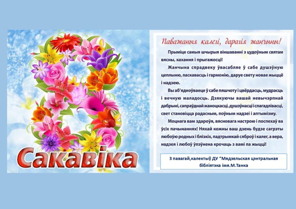 План мерапрыемстваў ДУ “Мядзельская цэнтральная раённая бібліятэка імя Максіма Танка” да Года беларускай жанчыны